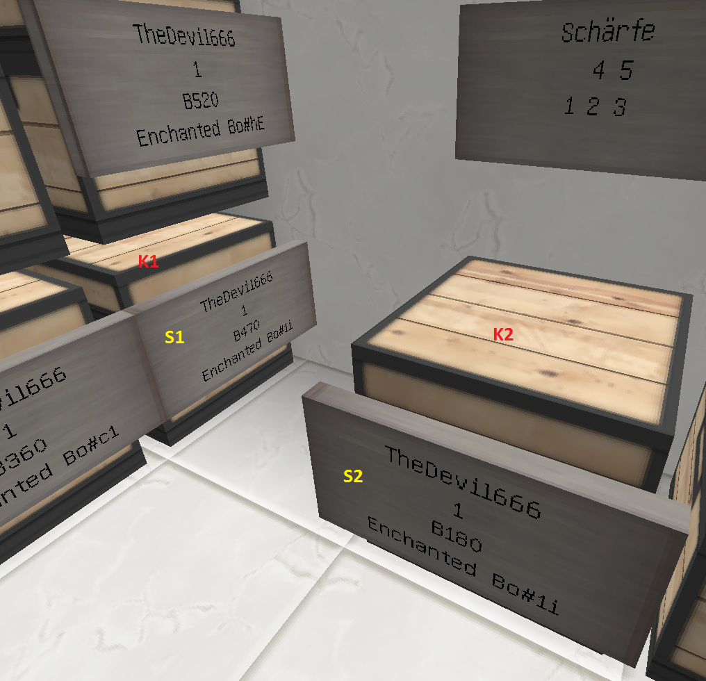 Truhen, die in einer Ecke, einen Block Abstand haben, erhalten die selbe ID.