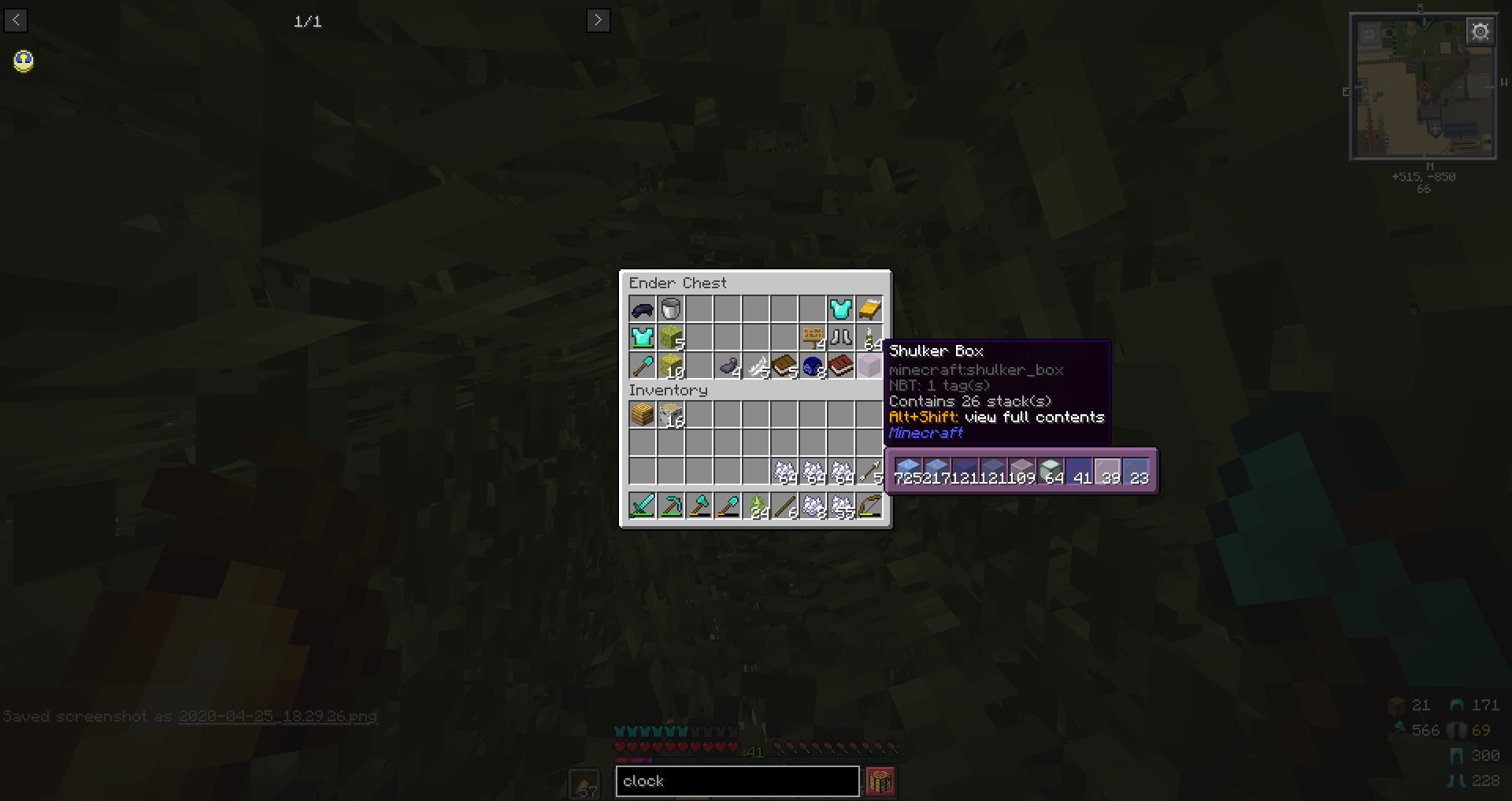 Dabei kann ich über eine Shulkerbox hovern und mit Shift den Inhalt anzeigen lassen, mit Alt+Shift auch nooch Nbt Daten.