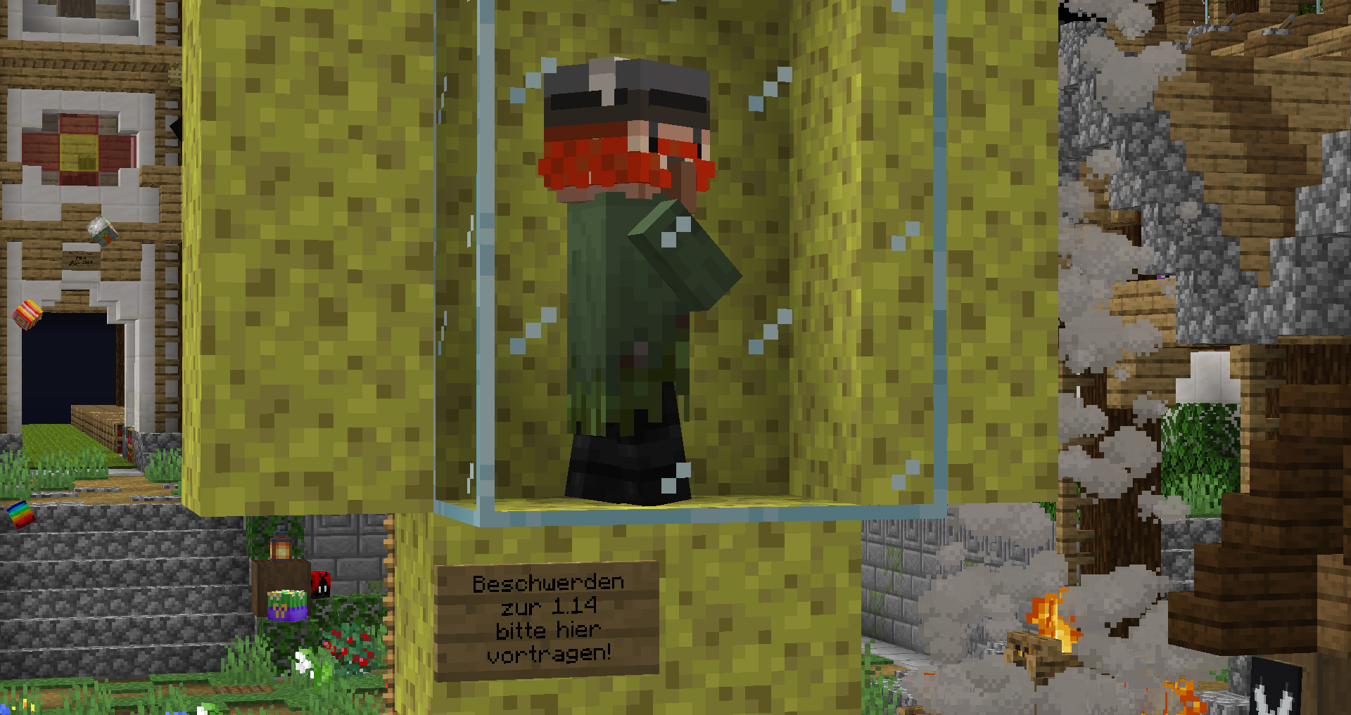 Speziell für das Beschwerde-Management zur 1.14. empfängt euch am Spawn nun ein Mitarbeiter. Man munkelt, dass dieser gewisse Ähnlichkeit mit einem Admin hat ...
