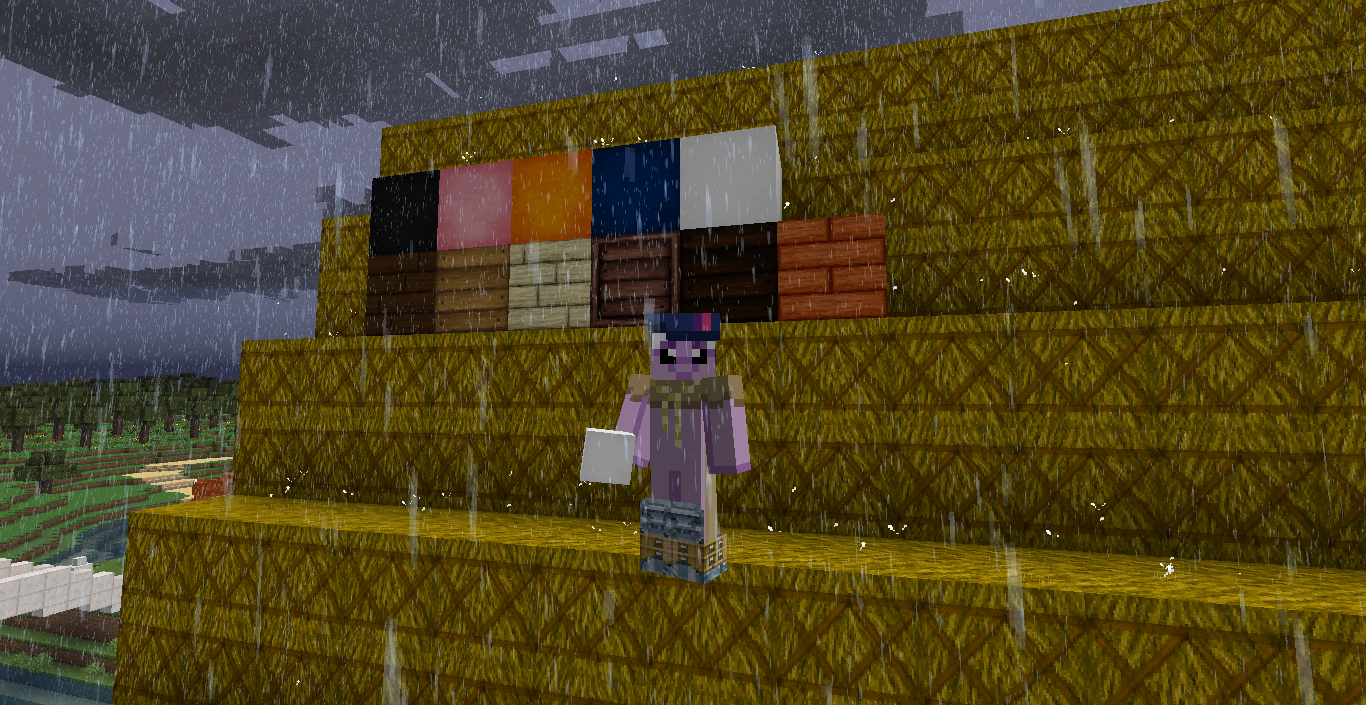 ich habe die Farbe der Hölzer und des Strohballens mehr dem Default angeglichen. Bei der Wolle habe ich das Muster entfernt.