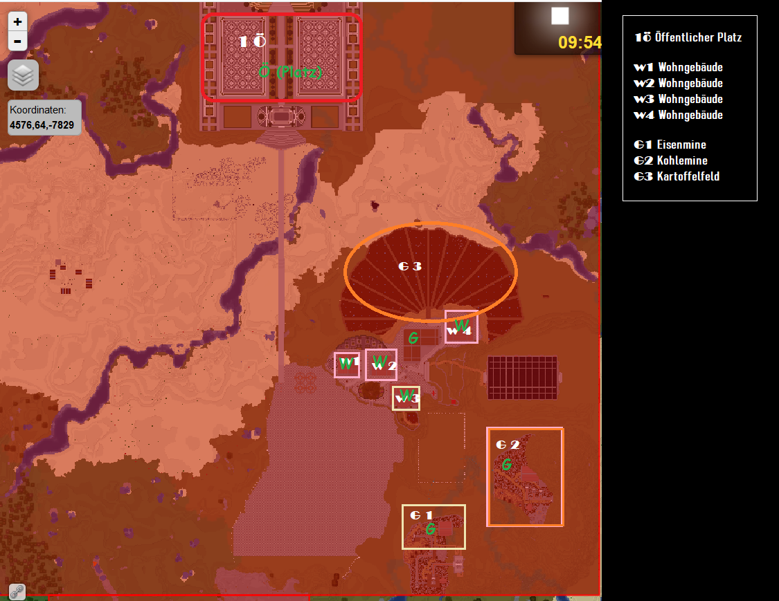 Hoffentlich hat der König recht und die Bürger werden ihre Marktstände dort errichten und es wird sich dort drumherum eine Innenstadt entwickeln. Wenn diese Ansammlung von Menschen wächst, werden sich hier Geschäfts-männer und frauen niederlassen und eine Wirtschaft errichten, mit Banken, Gaststätten und Läden die für eine prächtige Wirtschaft sorgen. Aber all das sind erstmal nur Zukunftspläne, nun muss man sehen ob die mächtigen Männer, mit denen der König Geschäfte macht, von unserer Gemeinschaft überzeugt sind und uns den Status "Siedlung" zuschreiben.