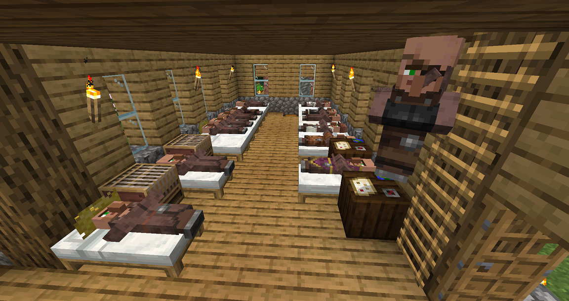 - Villager müssen frei herumlaufen dürfen. Als Schutz der Dorfgrenze ist nur ein ein Block hoher Zaun erlaubt, sonst keine weiteren Befestigungen.