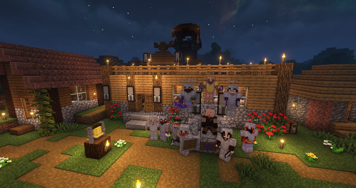 Mit einem Dorfzentrum nur 50 Block entfernt von einem Pillager Dorf und einem Zaun der nur 4 Block entfernt ist von einem Gebäude wurde ein Dorf aufgebaut in dem jeder Job vorhanden ist,.
