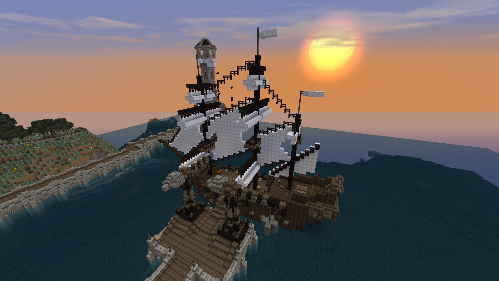 Vor einigen Monten kam ich auf die Idee, ein Schiff zu bauen. Da ich mich in meiner Freizeit viel mit Schiffen beschäfftige, wollte ich gerne eine in Minecraft verwirklichen. Das Schiff ist ca. 190 Blöcke lang und 30 Blöcke breit.