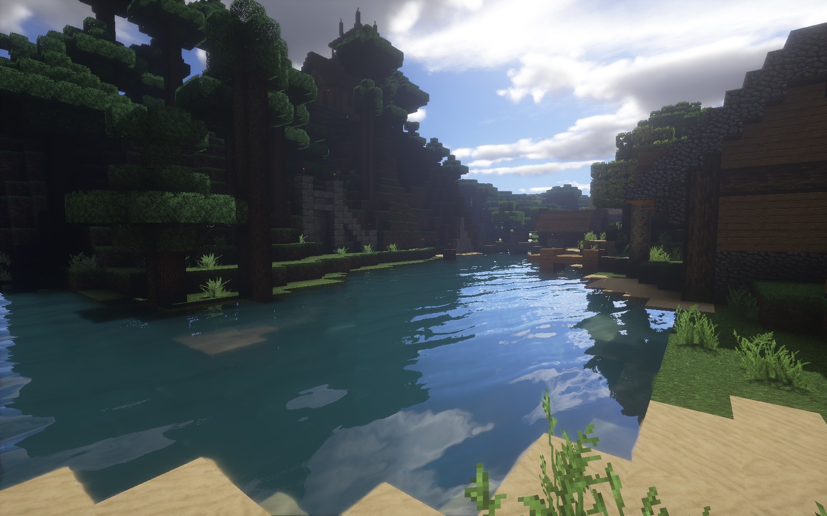 Königstal - jpk93 - 18.02.2017 Es war im Jahre 2016 als sich die drei Landherren TheRealMola, JELA599 und jpk93 nördlich der großen Wüste auf einer Waldlichtung niederließen, um an dieser Stelle ein Gut zu errichten. Schnell entwickelte sich eine kleine Gemeinde um die drei Höfe und es entstand eine große Kirche; außerdem siedelten sich ein Förster, ein Fischer, ein Schäfer und ein Getreide- und Gemüsebauer an. Die Wirtschaft des Ortes florierte und so brauchte es wenig Mühe, um zwei weitere Grundherren, kuki18 und Zilsar, davon zu überzeugen, ebenfalls hier Wurzeln zu schlagen. Gemeinsam fassten sie den Plan, Wirtschaft, Wissenschaft und Architektur weiter zu fördern, auf dass der Ort zu einer kleinen Siedlung wachse und vom hohen Lord Razen das Marktrecht erteilt würde. Denn dieses ist obligatorisch, um offiziell den Titel ,,Siedlung" tragen zu dürfen. Das Zentrum der Ortschaft liegt bei 945/-3230. Vorläufiger Wortführer der Gutsherren und Ansprechpartner ist jpk93. Der Baustil ist fiktiv mitterlalterlich, er kann keiner konkreten Epoche zugeordnet werden. Drei Wohnhäuser sind fertiggestellt und vier Wirtschaftsgebäude. Darüber hinaus gibt es einen öffentlichen Platz. Noch im Bau befinden sich die Wohnhäuser der neu Zugereisten sowie das Wegesystem; außerdem soll ein kleines Rathaus und ein Badehaus auf den nahen heißen Quellen entstehen. Wegenamen, Beschilderungen und Straßenlaternen sind ebenfalls noch in der Entwicklung. Daher: Dies ist noch kein offizieller Antrag auf die Stadtstufe Siedlung. Viele Gebäude sind noch nicht ausreichend ausgestattet, von Fackeln auf dem Boden ganz zu schweigen ^^. Ich denke, Ende nächster Woche wird der Antrag erfolgen. Anbei gibt es ein paar Bilder, um einen kleinen Eindruck zu bekommen, was der jetzige Status ist. Alle Aufnahmen sind allerdings noch in der Testphase, vorallem, weil ich noch kein OptiFine und Shader habe. Ich bitte über gewisse Dinge in diesem Viedeo hinwegzusehen, es ist nunmal nur ein Test [attachment=2023] Blick von Osten auf den Marktplatz [attachment=2024] Die Wassermühle [attachment=2025] Der Förster [attachment=2026] Blick entlang des Flusses zum Fischer [attachment=2027] Blick von Norden in Richtung Marktplatz Rechts: Baustelle des Zilsar, dahinter Haus TheRealMolas Im Hintergrund: Stabkirche auf dem Berg Ich werde diesen Thread stets auf dem Laufenden halten, wenn es Neuerungen gibt und ihm spätestens zum Antrag zur Siedlung einen richtigen Namen geben, denn wir konnten uns noch auf keinen einigen. Liebe Grüße jpk93 RE: Eine kleine Siedlung im Wald - Voxeel - 18.02.2017 Abgesehen davon, daß mir die Texturen in den Screenies nicht gefallen (Das Wasser sieht fast wie ein Kiesweg aus ^^) Ein sehr gelungener Anfang, wie ich finde. RE: Eine kleine Siedlung im Wald - Asgarioth - 18.02.2017 Das TP sieht aus wie Misa und das würde das graue Wasser erklären. Das war und ist ein Problem mit dem TP. Die kann man aber prima austauschen (hab dafür das Conquest Wasser genommen.). Dann sieht es auch wie Wasser aus.