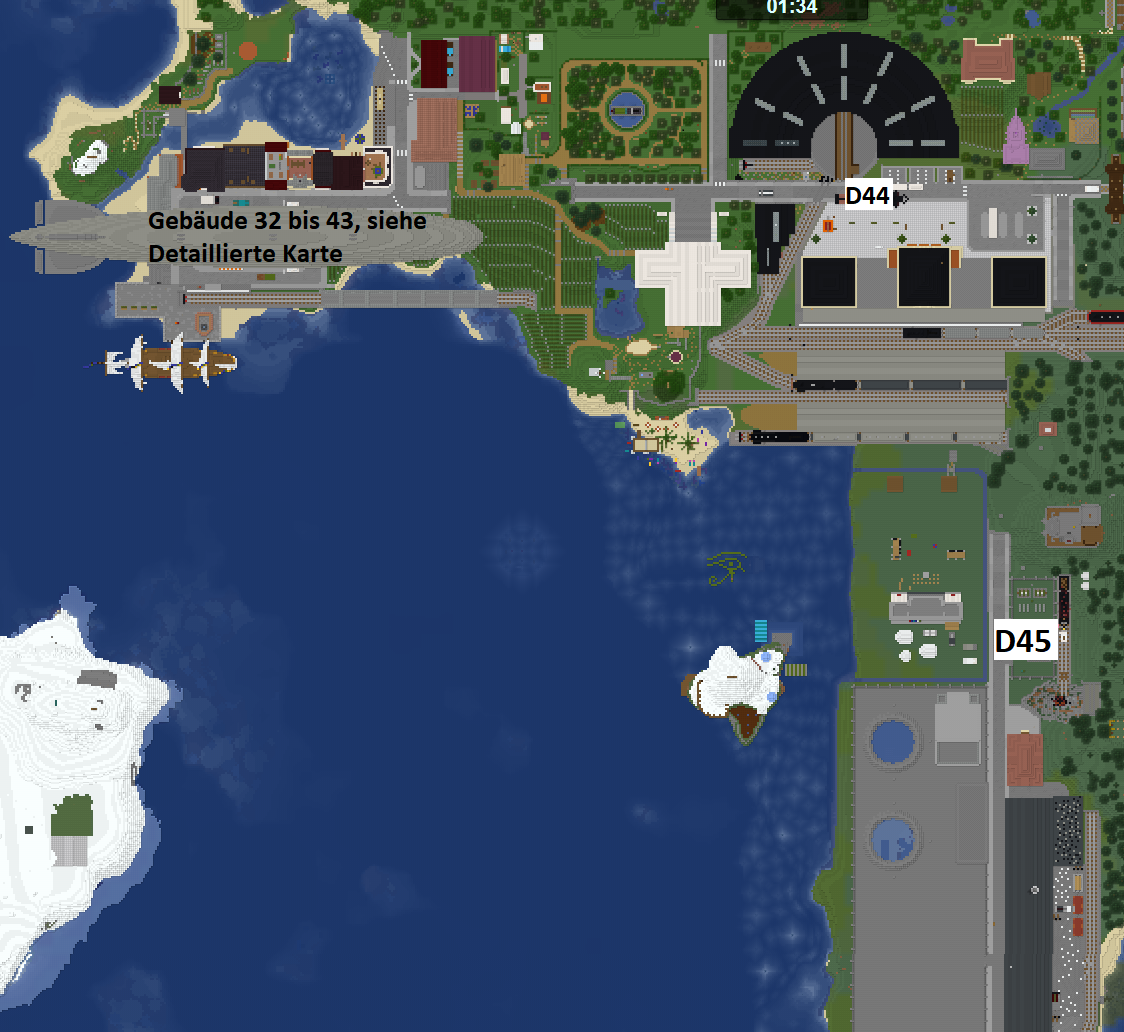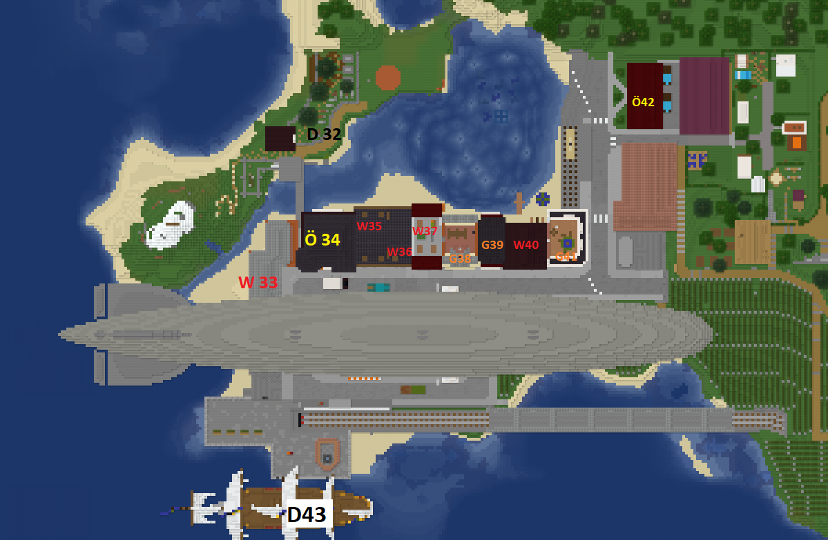 Hill Valley - Tobitze - 29.05.2021 Es geschah im Mai Anno 1429, als eine Gruppe gestrandeter Flüchtlinge, auf dem Blockminers Server, mit Ihren Booten strandete. An den Gestaden angekommen fanden Sie in einem verfallenen und verlassenen Räuberlager kurzfristig Unterschlupf, welches jedoch schnell zu klein wurde. Dies ist der Beginn der Geschichte von Terrestia. Auch wir gehörten zu der Gruppe gestrandeter, die sich rings um Terrestia ansiedelte. Bald schon, als die ersten vorläufigen Wohnhütten zusammengezimmert waren erkannten wir, dass die 3 Gründer Terrestias großes vorhatten und dabei sehr ambitioniert waren. Und wo schöne und große Städte entstehen, sind Touristen nicht weit. Schon bald konnten wir dank Terrestianischer Hilfe den Bahnhof in Betrieb nehmen und die ersten Züge, beladen mit Besuchern und Gütern von Terrestia, in Richtung Blockhaim schicken. Gezogen wurden diese von Legendären Dampflokomotiven wie der S 3/6 der Kaiserlichen Hill-Valleyanischen Reichsbahn, während der Zeppelin LZ-127 "Graf Zeppelin" den Luftverkehr eroberte. In all diesem Trubel blieben natürlich manche etwas verrückteren Touristen, wie Dr. Emmet Brown, nicht aus. Dieser errichtete zur Terrestianischen Grenze ein gigantisches Raum-Zeit-Kontinuums-Gefälle, welches das problemlose Pendeln zwischen dem Jahre 1492 auf Terrestianischer Seite und 1936 hier in Hill Valley ermöglicht. Name der Stadt: Hill Valley Bürgermeister & Monarch: Tobitze 1. Beigeordneter & Kaiser: ImSese Baustil: 30er Jahre Mitbauer: Schenki32, _NIW, Marccrafter01, Schenki23, Jule_03 Koordinaten: 3819 64 9490 Übersichtskarte: Da es unterm Zeppelin etwas unübersichtlich war, nochmal im Detail: Im Folgenden würde ich gerne die Stadtstufe "Dorf" beantragen