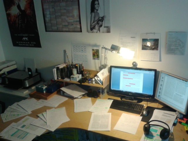 Ich glaube ich schulde einigen Personen von gestern Abend noch ein Bild meines Schreibtisches.
