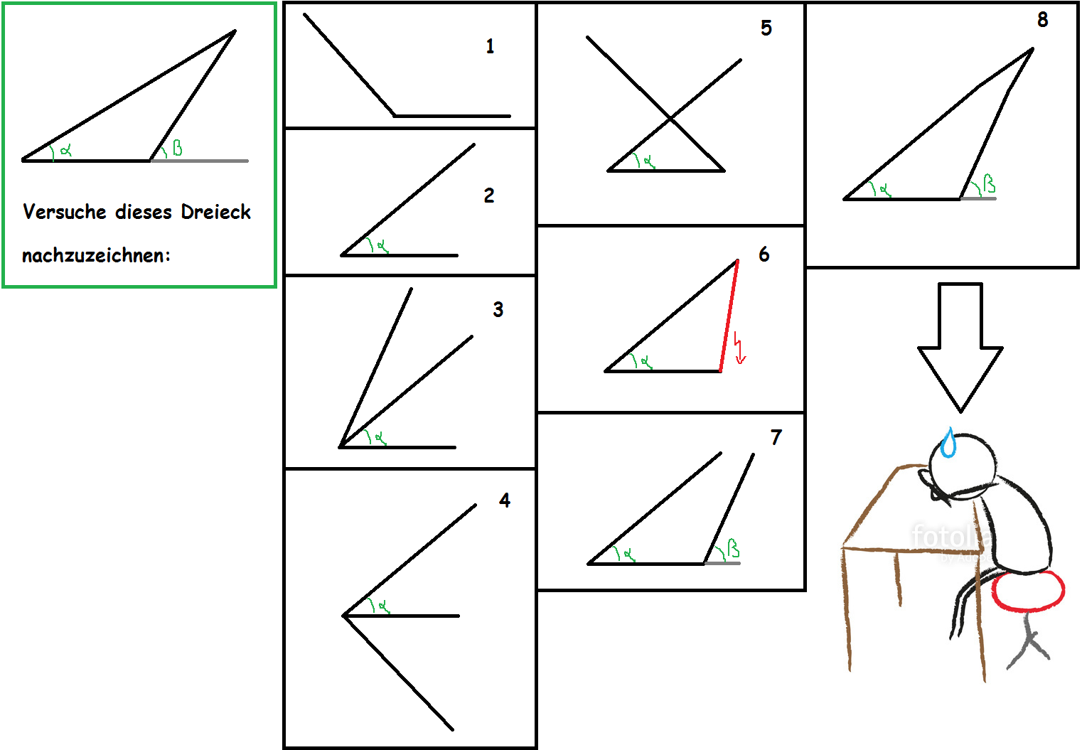 (Das erinnert mich daran wie ich in einer Mathearbeit mal an der Zeichnung eines Dreiecks mit der Beschriftung a,b,x auf die Frage "Wo befindet sich x?" das x einfach eingekreist und "DA!" geschrieben habe xD)