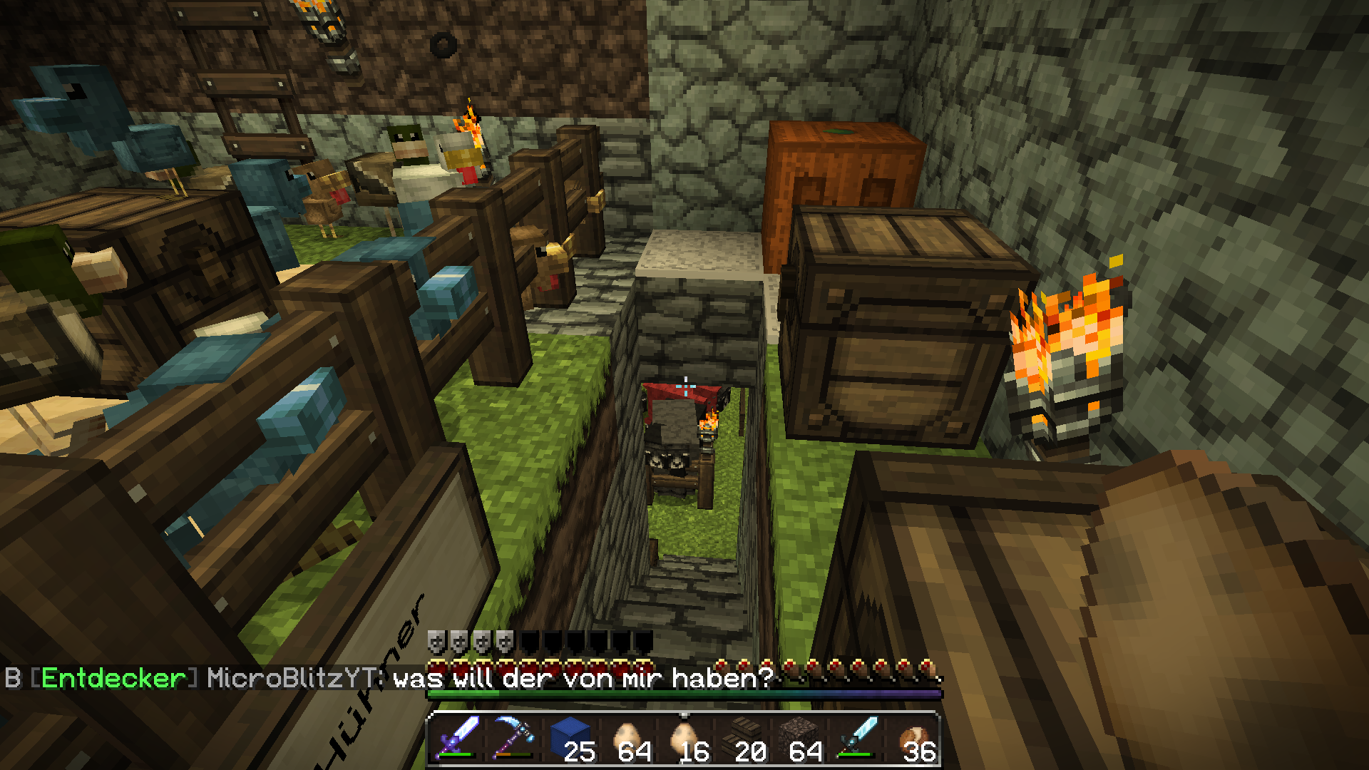 obwohl der tod fast direkt neben meinen turm war hab ich meine sachen leider nicht wieder gefunden. und heute will ich grad zu meinen turm laufen und finde das böse skelett mit meiner rüstung und meinem schwert <3