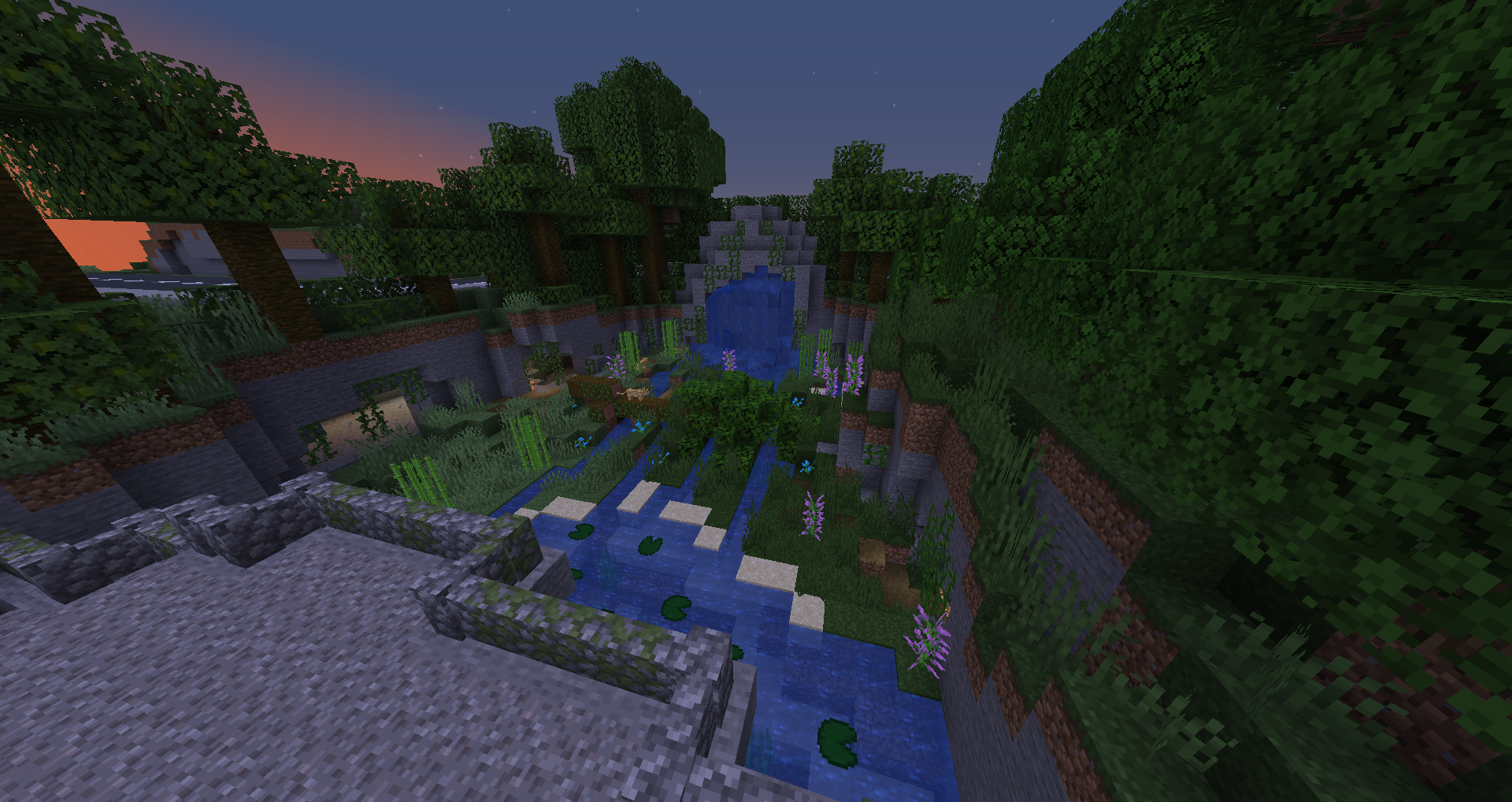 - Status: Nach langer Zeit in der lediglich die beiden Eingänge feststanden, wurden nun die ersten Gehege errichtet. Im ersten Bild ist das Pandagehege zu sehen, sowie die Hängebrücke die in den Dschungelbereich des Zoos führt, hinein zum zweiten Bild, dem neuen Wildkatzengehege der Ozelots. Links im Bildrand leicht zu sehen, die angrenzende Fledermaus-Grotte. Der restliche Zoo ist noch in Planung.