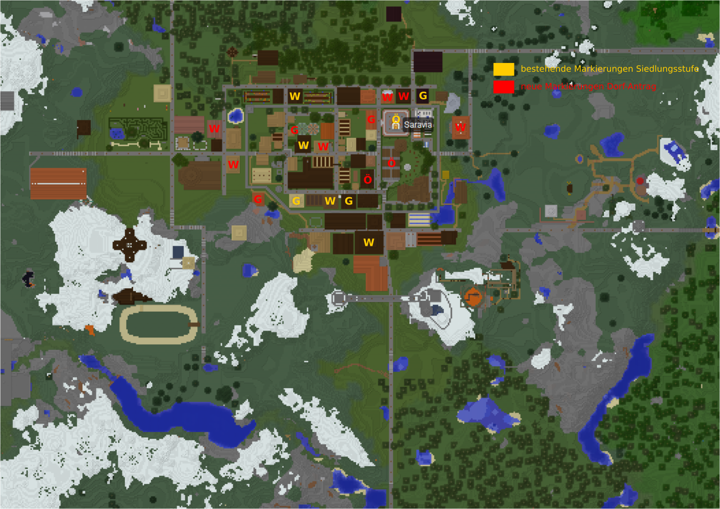 Was ich nicht genau verstanden habe ist, daß Du ja sagst, daß es viel Deko gibt, aber im nächsten Satz nicht genug Dekoration beklagst. Die Chestshops gehören natürlich als zentrales Element zur Stadt, weil ja der Handel der Motor für das Wachstum ist (Server-ökonomisch genauso wie in der Stadt-"Geschichte") Aber mit 23 von 77 Gebäuden, die bisher nicht als Geschäft konzipiert sind, haben wir da denke ich noch einen passablen Schnitt, oder? Ich habe das jetzt so verstanden, daß es mehr Bauwerke geben soll, die nicht Häuser sind? So etwas wie Statuen o.ä. ? Das wäre langfristig durchaus Teil des Konzepts. Und auch der "Industriebereich" der Stadt in der dann die Minen stehen, wird vielleicht auch noch den ein oder anderen Chestshop für Erz beherbergen, aber doch hauptsächlich auf die Außengestaltung und Wirkung der Bauwerke abzielen, besonders im Vergleich zur Altstadt. Aber wir können ja in-game nochmal drüber reden. Auch bezüglich der Planungen für eine Bahnanbindung hab ich noch nicht so ganz den Durchblick, nach der Lektüre der entsprechenden Doku.