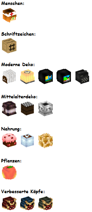 Im Rahmen eines Kopfshopupdates wurden wieder einige Köpfe hinzugefügt und einige durch eine verbesserte Version ersetzt.