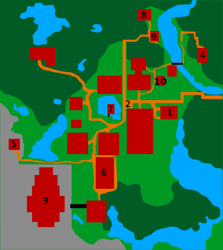 Noch im Bau befinden sich die Wohnhäuser der neu Zugereisten sowie das Wegesystem; außerdem soll ein kleines Rathaus und ein Badehaus auf den nahen heißen Quellen entstehen. Wegenamen, Beschilderungen und Straßenlaternen sind ebenfalls noch in der Entwicklung. Daher: Dies ist noch kein offizieller Antrag auf die Stadtstufe Siedlung. Viele Gebäude sind noch nicht ausreichend ausgestattet, von Fackeln auf dem Boden ganz zu schweigen ^^. Ich denke, Ende nächster Woche wird der Antrag erfolgen.