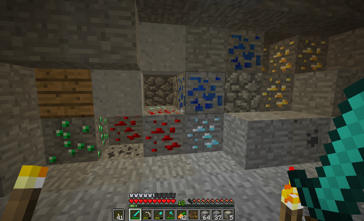 Zudem gibt es noch eine art Fehler das ich zwischen durch wie auf diesen Bildern unten ihr sehen könnt, eine ganze wand aus Erzen besteht und sobald ich eins davon abgebaut habe ist dieser nicht nur wieder ein stein sondern dann verschwinden die Items drumherun ebenfalls bzw werden zu steinen.