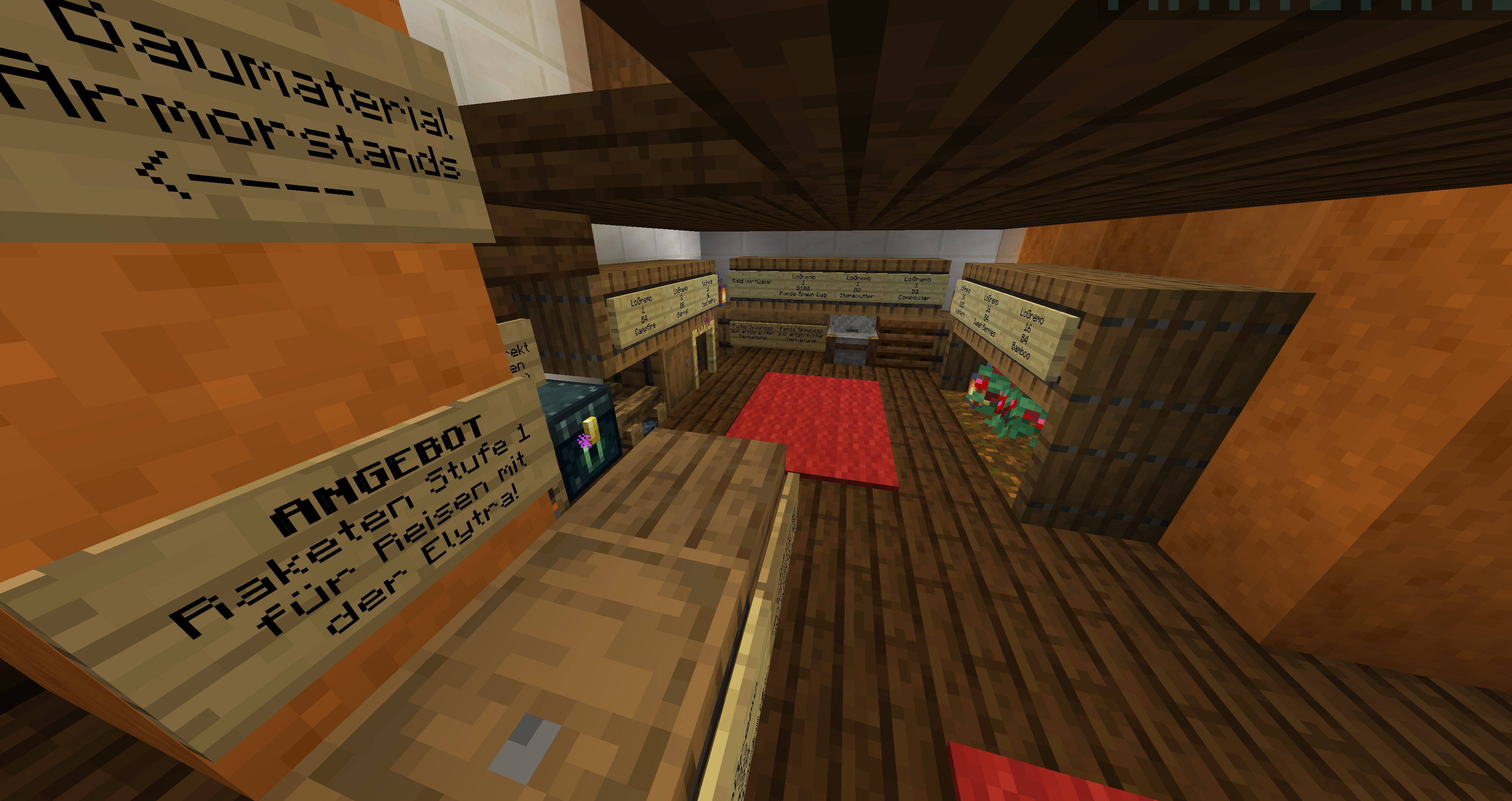 - Ein wechselndes Sonderangebot, aktuell gibt es Raketen Stufe 1 für die Elytra