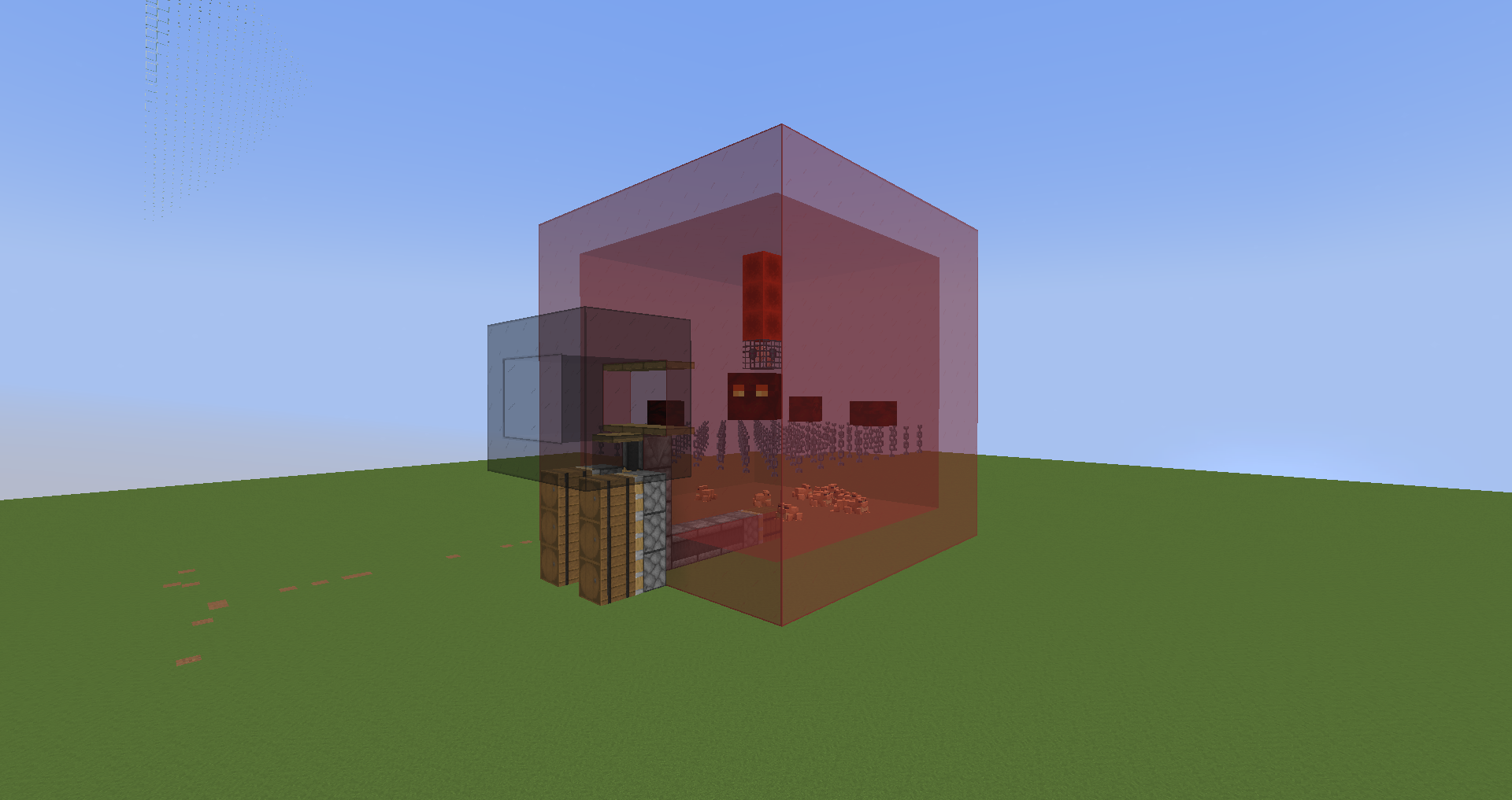 - Eine Farm bei der sich die großen Magma-Cubes noch innerhalb der Spawnerreichweite befinden, dort zerkleinert werden und die kleinen Magma-Cubes nach unten fallen um dort von Fröschen gefressen zu werden. Hierbei darf die gesamte Spawnerreichweite für die Farm genutzt werden da der Spawner erst dann Magma-Cubes nachspawnt, wenn die Fläche frei geworden ist. Das zerkleinern der Magma-Cubes muss zwingend vom Spieler ausgehen! Pulverschnee oder Kakteen sind hier nicht erlaubt!