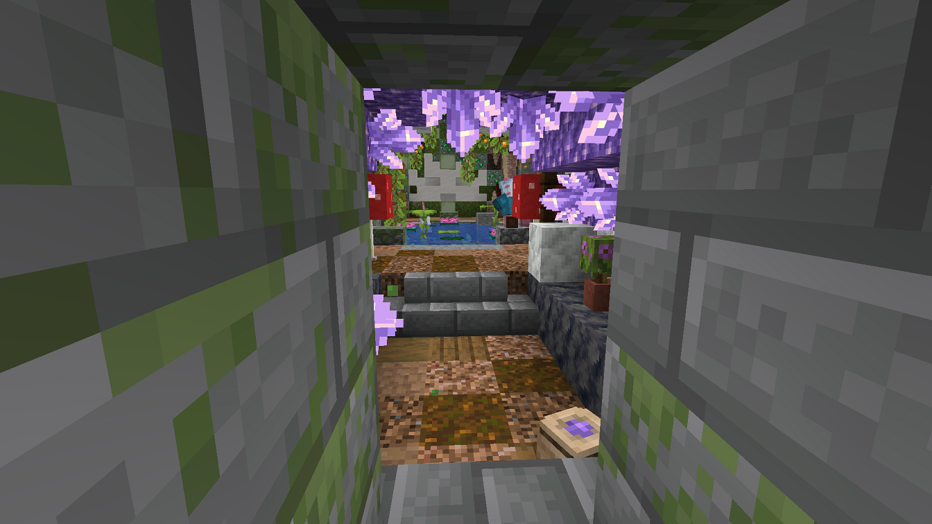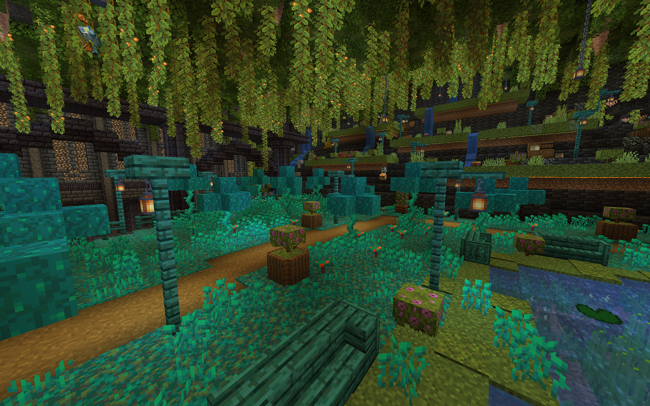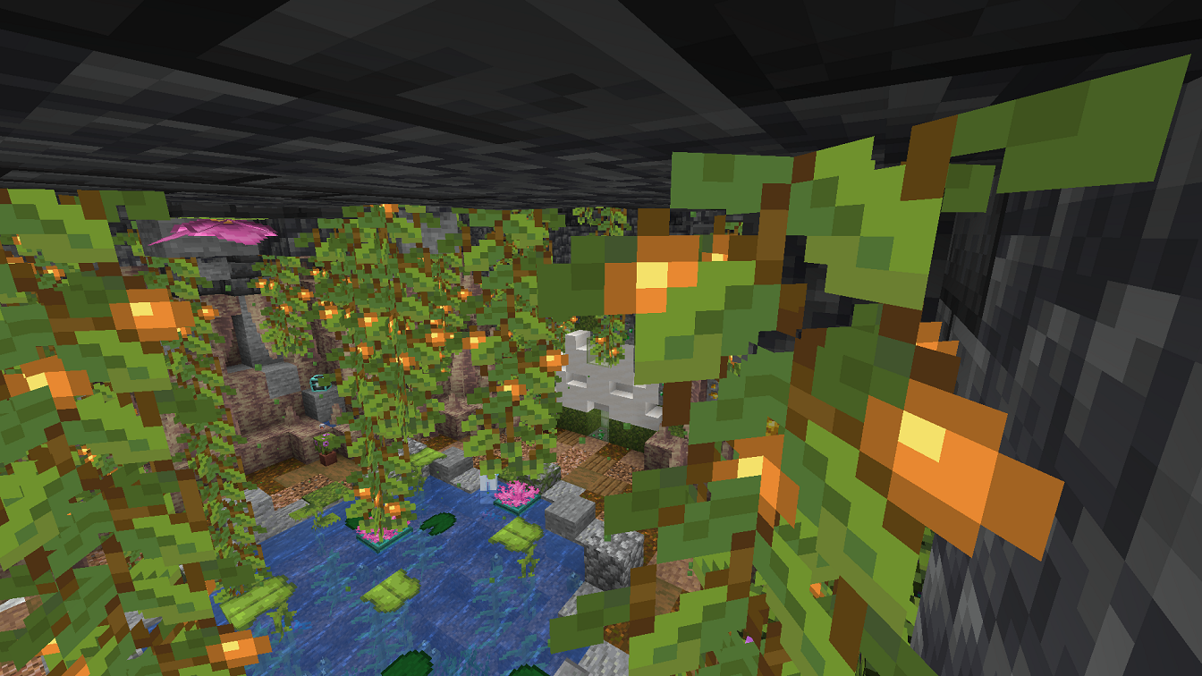 Eine kleine, von Leuchtbeeren erhellte Höhle, in der man neben Axolotls noch einige weitere kleinere Tiere entdecken kann. Aber man kann nicht nur Sachen entdecken, sondern die Höhle lädt auch zum Entspannen ein. Vielleicht probiert ihr dort auch euer Angel-Glück?