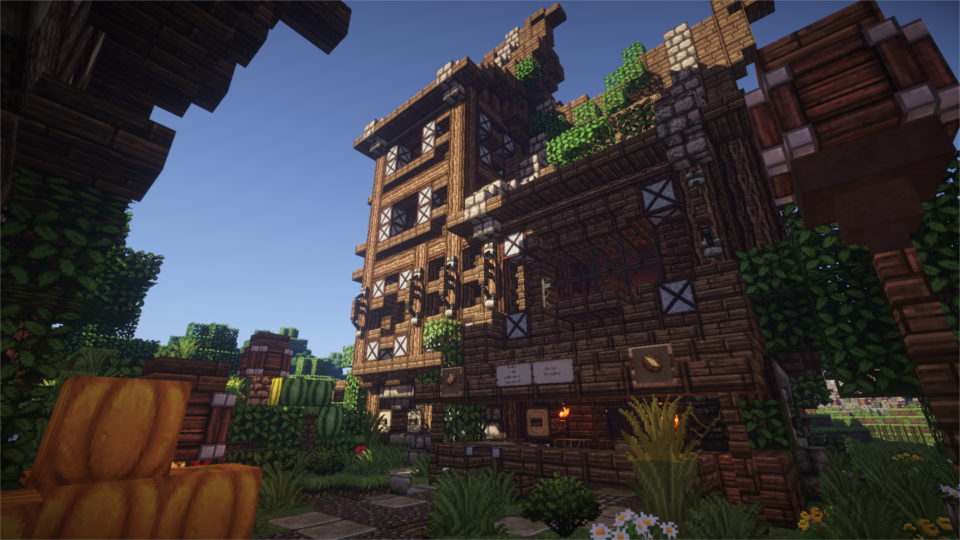 Da ich nicht so viel zum Survival komme ist mein Beitrag mein einziges Survival-Bauwerk in den letzten Wochen: Ein "kleines", leicht verfallenes Treppenhaus unter meiner Insel. Das Treppenhaus windet sich um einen hohen Raum in der Mitte. Das Treppenhaus selbst ist mit Blumen und Köpfen dekoriert. Der innere Raum ist stark verwuchert.