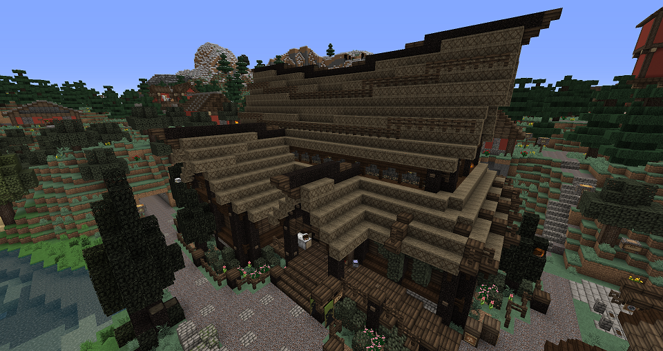 Das Gebäude selbst ist ein Nachbau der Tavere "Schlafender Riese" aus Flusswald aus dem Spiel Skyrim. Um möglichst viele Details nachzubauen wurden Screenshots aus Skrim direkt zum Bau mit einbezogen. Um das ganze auch Nicht-Skyrim-Spielern darzulegen finden sich unten Screenshots vom Original in Skyrim und vom Nachbau in Minecraft.